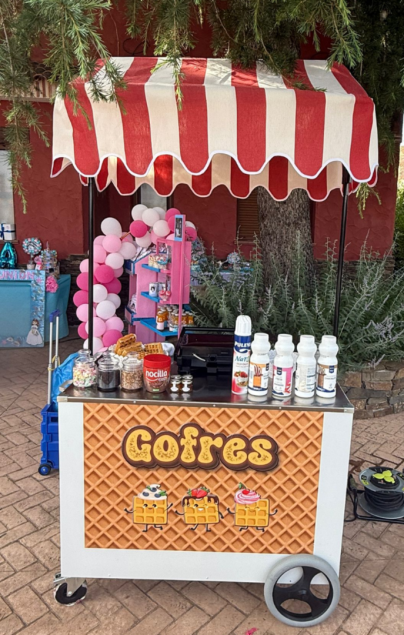 Los carritos de gofres incluyen camarero que se encarga de prepararlos y servirlos.